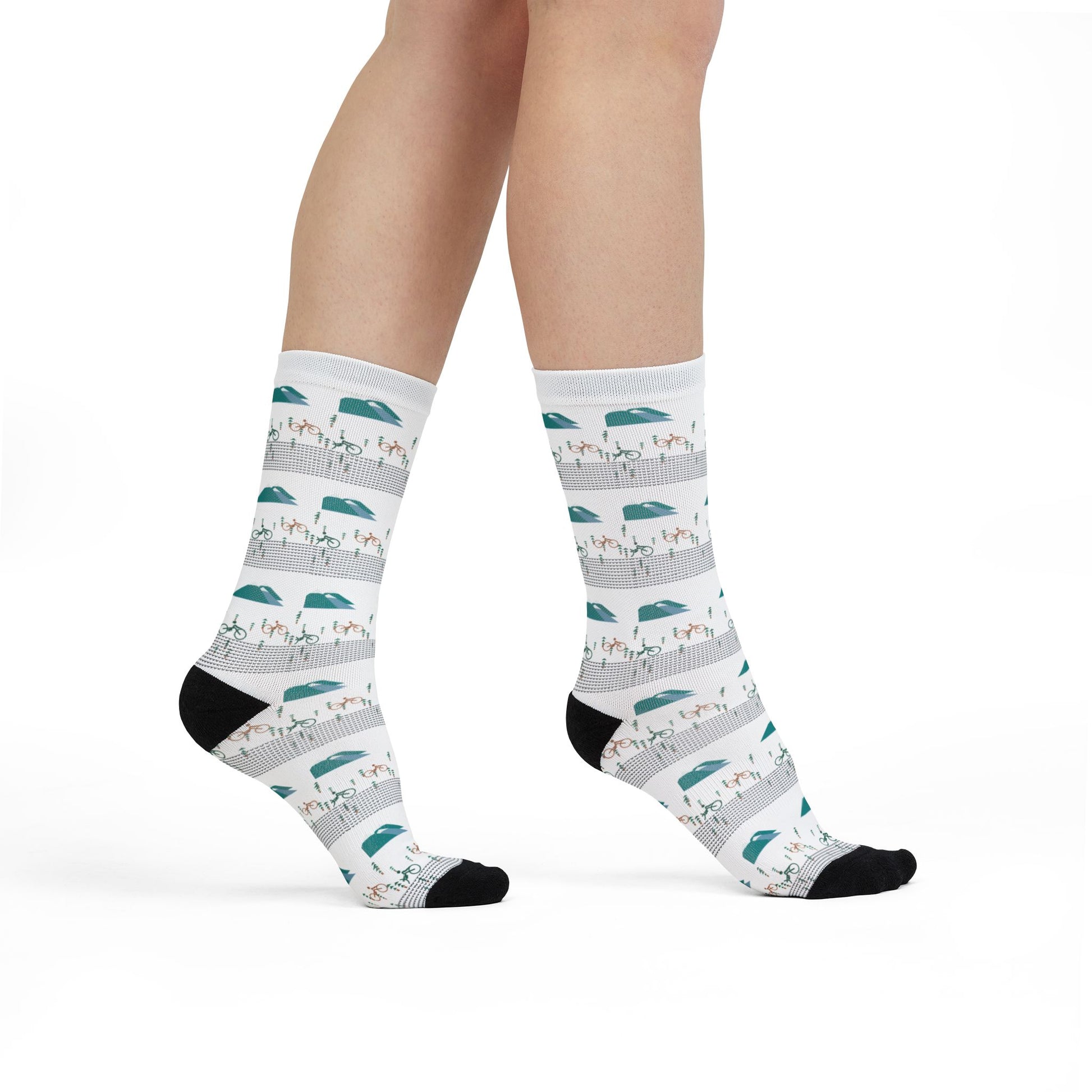 Nature-Inspired Crew Socks, Fun Gift for Outdoor Lovers, Cozy Footwear for Hiking, Unique Sublimation Socks, Casual Everyday Style